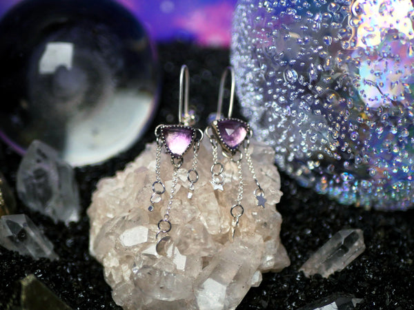 L'améthyste est une pierre très douce qui aide à la clairvoyance, au développement de la spiritualité, la méditation. Elle apporte la paix intérieure. Elle est efficace contre les ondes négatives, les peurs, et les cauchemars.