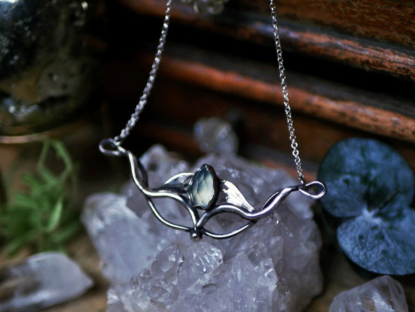 Ce collier fait partie de la Collection Art Nouveau. Il est orné d'une calcédoine facettée. Il est forgé et gravé à la main, avec des techniques de bijouterie traditionnelle. Le pendentif est monté sur une chaîne en argent 925 de 45 cm, qui peut être recoupée à la demande pour être porté plus au ras du cou, n'hésitez pas à l'indiquer lors de votre commande.