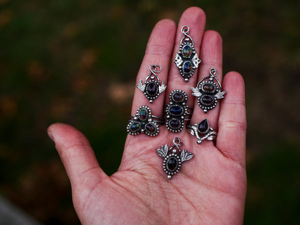 L’opale noire est une pierre onéreuse, qu'il faut protéger de l'humidité pour préserver ses beaux reflets, appelés "feux". C'est une pierre de protection et d’introspection, liée à la transformation intérieure. Elle aide à surmonter les peurs, renforce la confiance en soi et stimule l’intuition. Elle agit comme un bouclier énergétique, absorbant les énergies négatives tout en favorisant un profond ancrage et un alignement spirituel. Les opales noires d’Éthiopie sont hydrophanes : elles peuvent absorber l’eau et changer d’aspect temporairement, il est donc conseillé d’éviter les immersions.