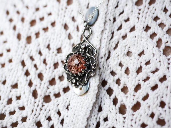 Ce collier est orné d'un quartz chaman, il est forgé à la main en argent 925. Le pendentif est monté sur une chaîne en argent 925 de 45 cm.