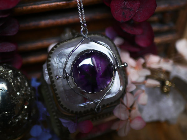 L'améthyste est une pierre très douce qui aide à la clairvoyance, au développement de la spiritualité, la méditation. Elle apporte la paix intérieure. Elle est efficace contre les ondes négatives, les peurs, et les cauchemars.